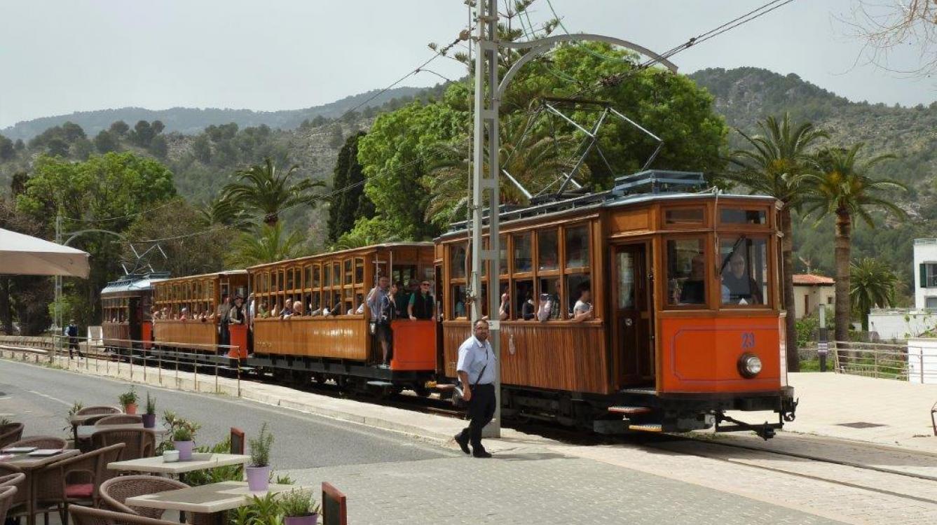 Arrivé à Soller, le visiteur continue à être plongé dans une ambiance ferroviaire rétro puisqu'un tram au style ancien l'attend devant la gare pour le conduire, à travers les rues et places de la ville, à la plage et au port de Soller, au terme d'un parcours de 4,8 km. Ouverte en octobre 1913, cette ligne à voie de 0,914m (identique à l'écartement du CF de Soller) est électrifiée en courant continu 600 volts. Après avoir traversé la ville et longé son marché, elle débouche le long de la baie et de la plage, à la courbure parfaite, pour terminer au port. Elle a la particularité d'être exploitée par du matériel ancien à caisse bois, 3 motrices de 70 ch construites par Carde et Escoriaza datant de l'ouverture de la ligne. Le parc est complété par des motrices Carris / Maley et Taunton datant de 1931/1939 et originaires du réseau de Lisbonne. Les motrices tractent des remorques anciennes à 2 essieux datant aussi de l'origine de la ligne (1913), voire plus anciennes (1890, ex-tramways de Palma). En 2001-2002, ce parc a été complété par des remorques à bogies de plus grande capacité construites par les ateliers du train de Soller, dans le style du matériel d'origine. L'emprunt de ce tram, évidemment très prisé des touristes, est un régal. Depuis le front de mer, ou attablé à la terrasse d'un café sur la place de la Constitution, on ne se lasse pas de ses évolutions, rythmant la vie de cette jolie cité.