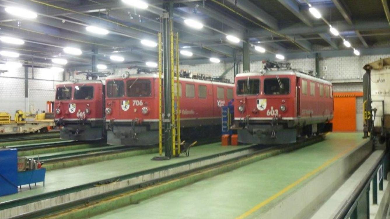 Au retour du spectaculaire train spécial accompagnant le chasse-neige sur la ligne de la Bernina (cf l'album "train spécial chasse neige sur la Bernina"), nous avons pu visiter le dépôt RhB de Samedan. Cet établissement est situé à un point stratégique de la Haute-Engadine à la bifurcation de la ligne joignant St-Moritz et de celle aboutissant à Pontresina sur la ligne de la Bernina St-Moritz-Tirano. Quelques km en amont se rejoignent aussi les itinéraires de l'Albula, en provenance de Coire et de l'Engadine, en provenance de Scuol-Tarasp mais aussi de Landquart, Klosters via le long tunnel de la Vereina.
