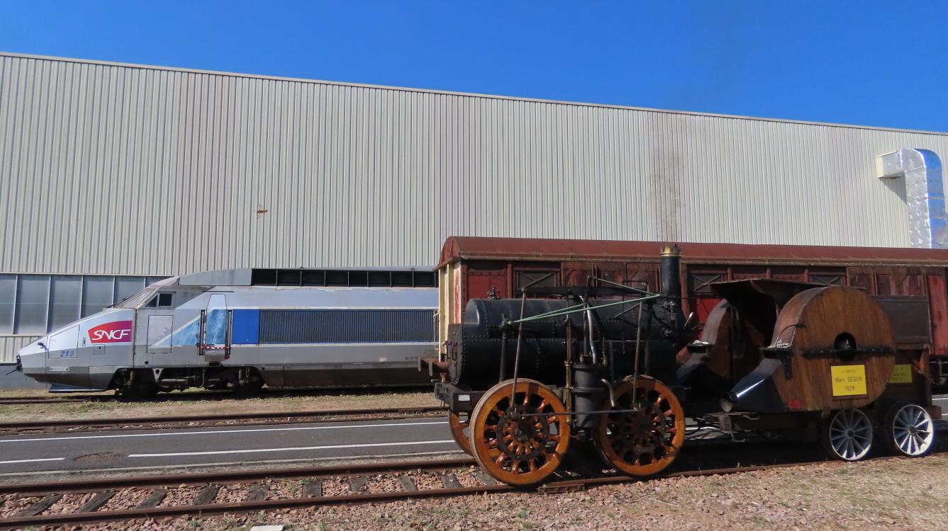La locomotive Marc Seguin et la rame TGV 218 : ateliers TSEE de Villeneuve Saint-Georges