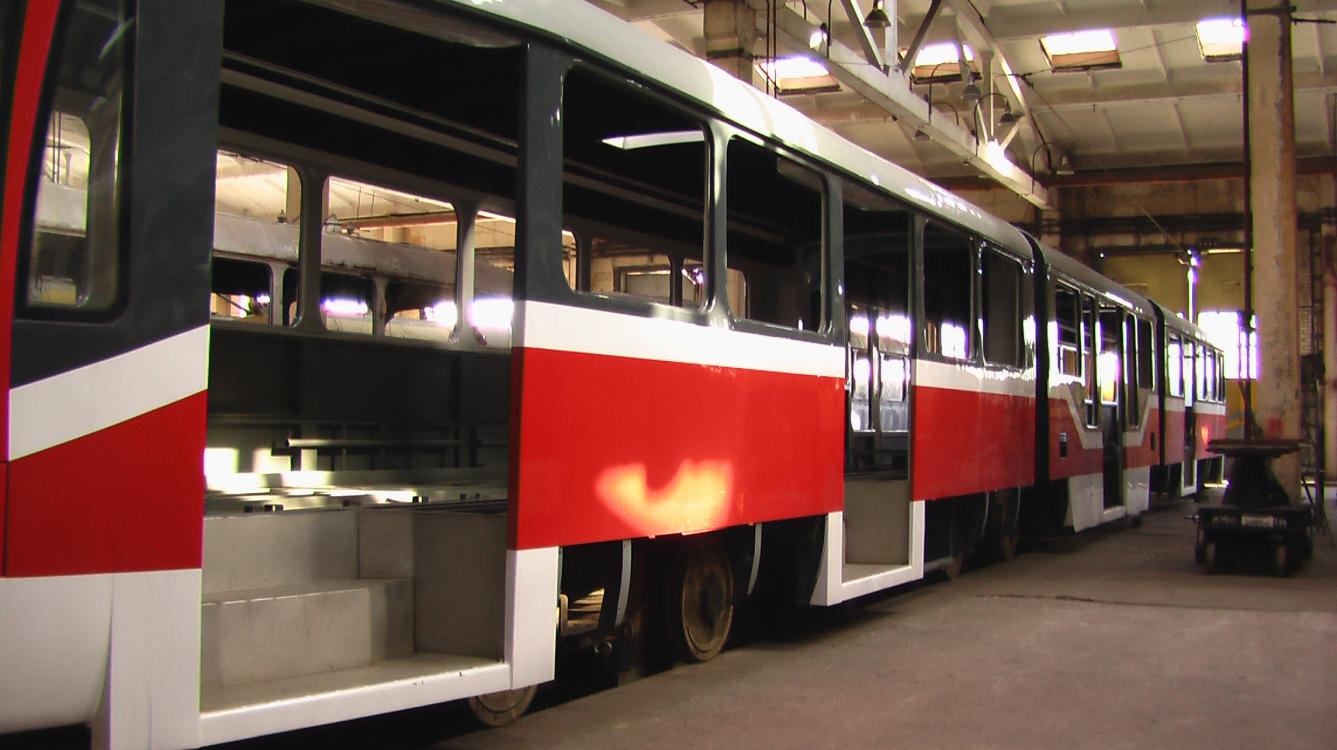 Kiev en 2005, construction d'une Tatra articulée triple a l'atelier du réseau Est