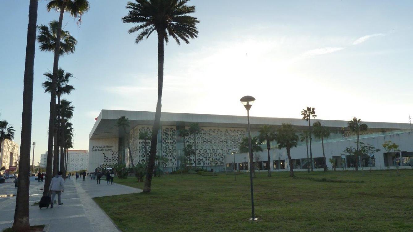 Nous partons de la gare de Rabat-Agdal. C'est la gare principale de la capitale. Ultramoderne et largement dimensionnée, très lumineuse, elle est conçue comme un pont au-dessus des 8 voies qui la desservent. Dotée de deux accès nord et sud qui en fait aussi un trait d'union entre les quartiers situés de part et d'autre des voies, on accède à son grand hall par des escaliers mécaniques. C'est à ce niveau que se situent les salles d'embarquement, l'accès aux quais étant contrôlé et nécessitant la présentation d'un titre de transport. Les 8 voies à quai suffisent largement pour son trafic, relativement important en nombre de voyageurs, mais constitué pratiquement essentiellement de trains de passage. La gare est fréquentée par les trains de grande ligne de et vers Fès, Oujda, Tanger, Casablanca, Marrakech, assurés en rames Corail remorquées par des locomotives Alstom Prima II série E1400 que nous avons déjà présentées en gare de Fès. On voit également des trains régionaux Casablanca - Kénitra assurés en rames automotrices à 2 niveaux italiennes TAF; mais les circulations phares qui fréquentent la gare sont assurément les TGV (plus exactement les 12 RGV2n2 d'Alstom) qui assurent les liaisons Casa-Voyageurs - Tanger-Ville via Rabat et Kénitra en 2h10 pour 323 km avec un cadencement horaire. Le roi Mohammed VI a nommé le service à grande vitesse Al Boraq (البُراق), en référence à la créature ailée qui a transporté Mahomet de La Mecque à Jérusalem pendant le voyage nocture de l'isrā' (source : Wikipedia). Ce nouveau service, unique sur le continent africain, a été ouvert le 16 novembre 2018.